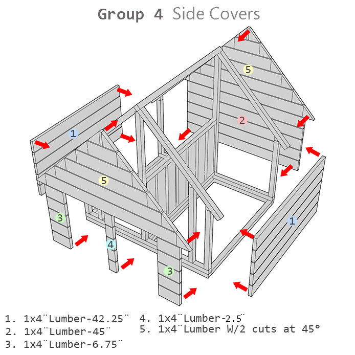 In this step, we will cover the front, back, and sides of the double dog house using the following materials: